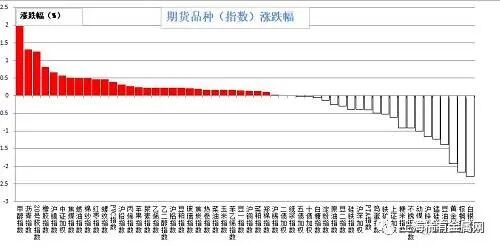 昨日期货市场多数上涨。涨幅较大的是甲醇(2.25%)、沥青(1.31%)、20号胶(1.25%)、橡胶(0.82%)、沪镍(0.67%);跌幅较大的是白银(2.28 %)、棕榈油(2.17%)、黄金(1.92%)、豆油(1.38%)、,锰硅(1.23%)。